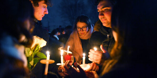 On Sunday evening, city leaders, residents and others gathered at a park to honor the victims. The event originally was scheduled as a Christmas tree and Hanukkah menorah lighting.
