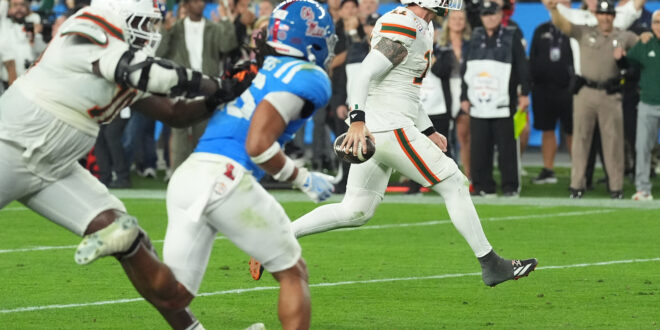 GLENDALE, Ariz. (AP) — Miami beats Mississippi 31-27 in the Fiesta Bowl to advance to the College Football Playoff title game.