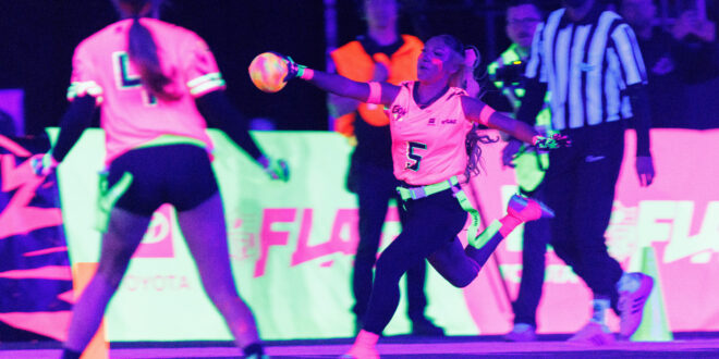 On Wednesday, it was the Toyota Glow Up Classic, a glow-in-the-dark flag football game that promotes girls flag and showcased some of the Bay Area’s best female high school players playing under UV lights with glowing jerseys and gear.