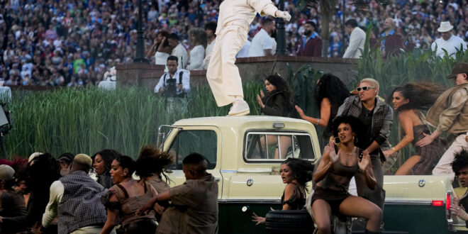 For around 13 minutes during the halftime show sponsored by Apple Music and Roc Nation, all eyes on the field — and around the world — were on Benito Antonio Martínez Ocasio.