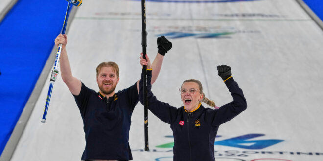 The Wranås persevered through a nailbiter of a championship game in front of a spirited, pro-U.S. crowd and pounced after the Americans left an opening in the last end. Isabella threw the winning stone and hunched close to the ice, watching her brother sweep until their red stone knocked out the Americans’ yellow rock for a 6-5 victory.