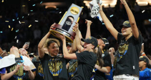 To no one’s surprise, UConn fought to the finish — Solo Ball banked in a 3 to cut it to four with 37 seconds left — and after two missed free throws, UConn’s Alex Karaban (17 points) barely grazed the rim on a 3 that would’ve cut the deficit to one with 17 seconds left.